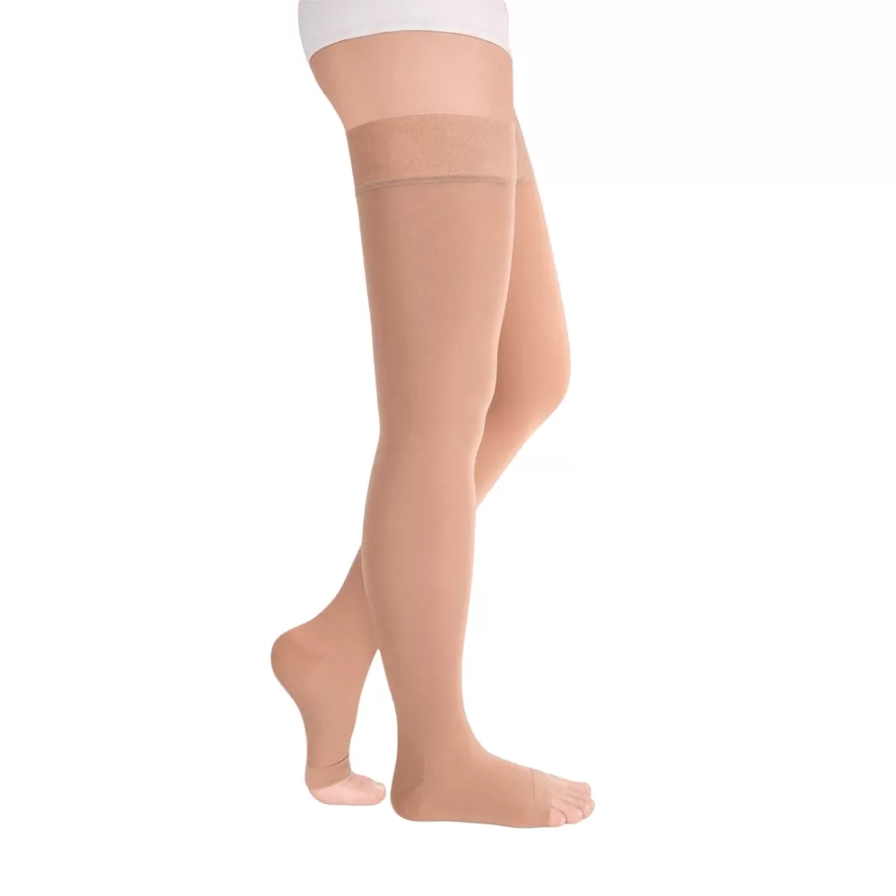 - резинка на силиконовой основе, в том числе на широкое бедро, мягко фиксирует чулок , не нарушая кровотока