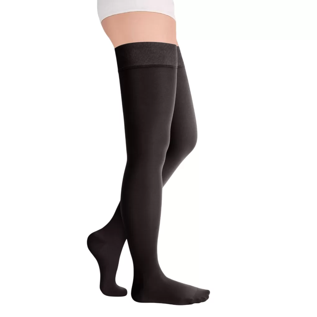 - резинка на силиконовой основе, в том числе на широкое бедро, мягко фиксирует чулок, не нарушая кровотока