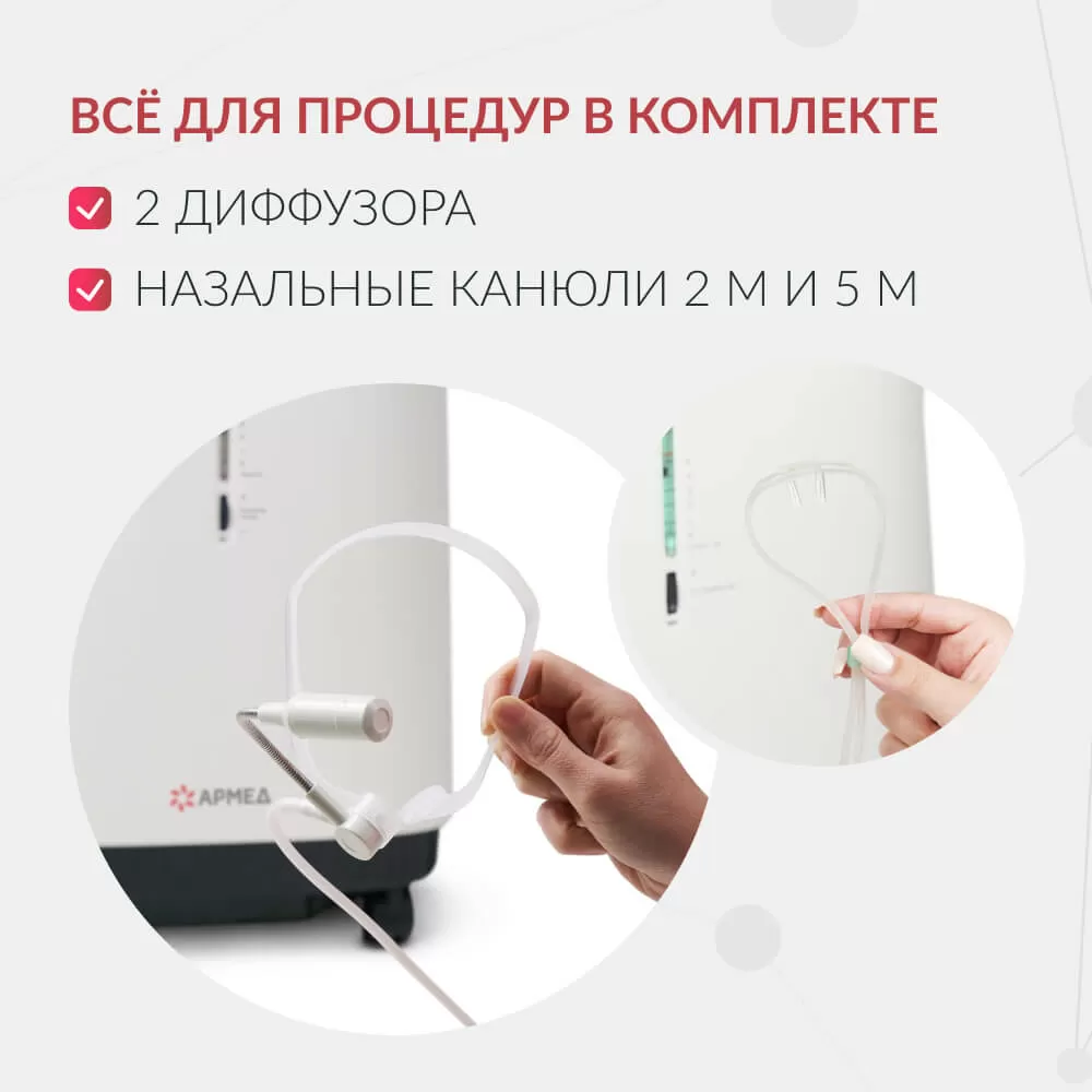 - Полная комплектация. В комплекте с концентратором кислорода поставляется два диффузора и две назальные канюли длиной 2 м и 5 м. Такой набор позволяет сразу, ничего не докупая, приступить к процедурам, проводить их любым удобным для пациента способом и при необходимости чередовать режимы кислородотерапии. Диффузор универсального размера имеет гибкую трубку, подстраиваемую под параметры пользователя, и предполагает многоразовое использование. Длина соединительных шлангов и наличие пульта ДУ позволяет находиться на удобном расстоянии от прибора, не привязывая место процедуры к расположению розетки питания. Также в комплекте поставляются два запасных предохранителя.
