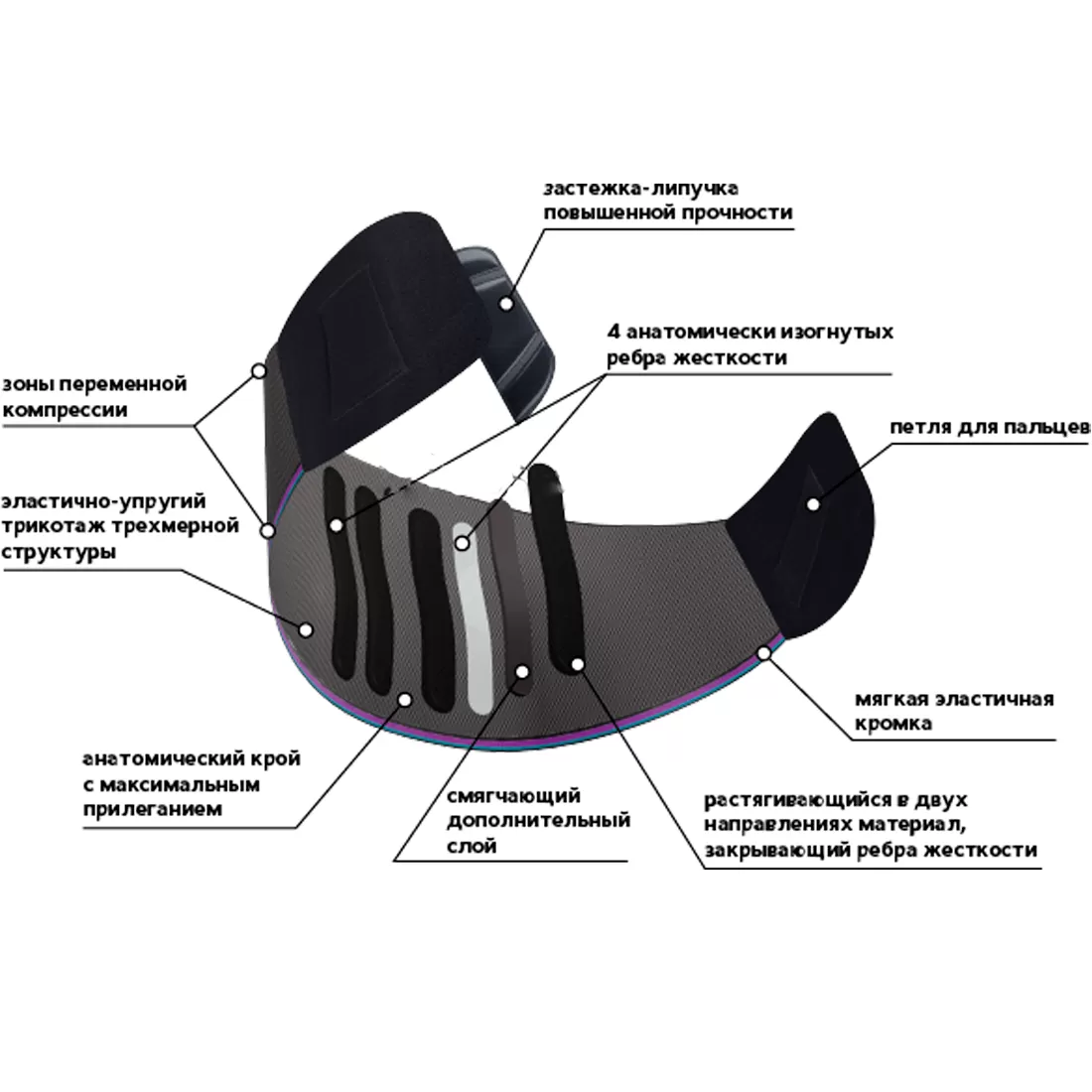 - прочные износостойкие застежки со специальными петлями под пальцы для облегчения надевания