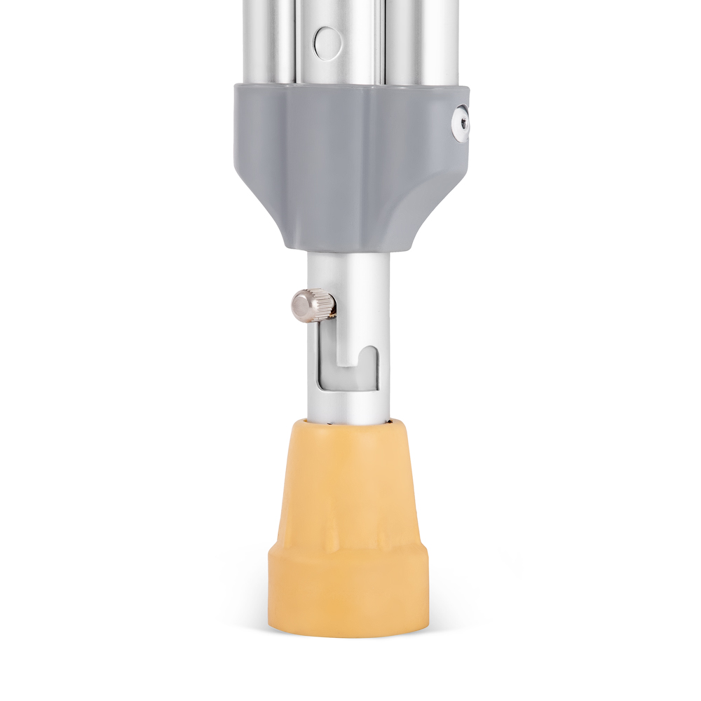 - Костыль легко регулируется по высоте под рост пользователя с помощью кнопочного фиксатора