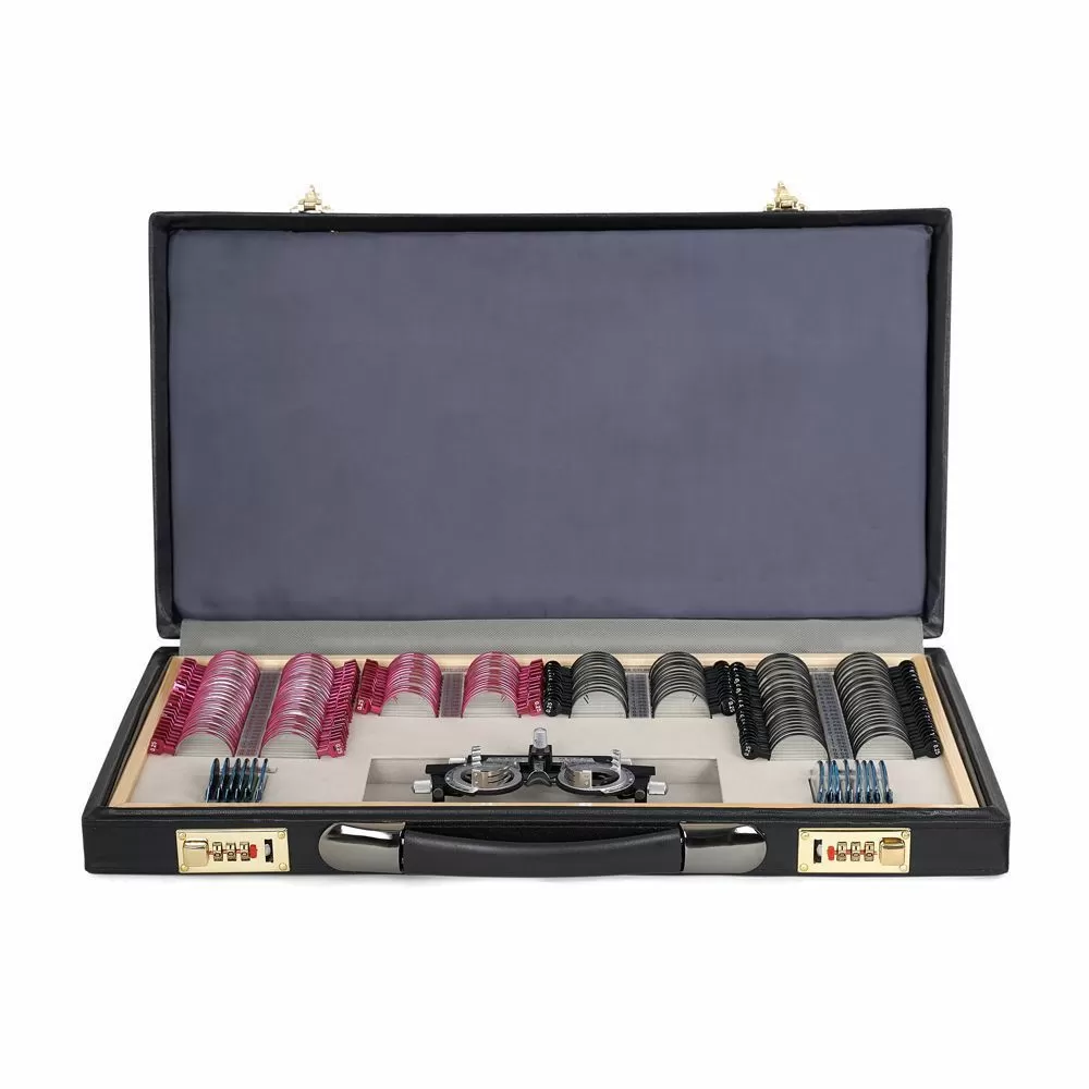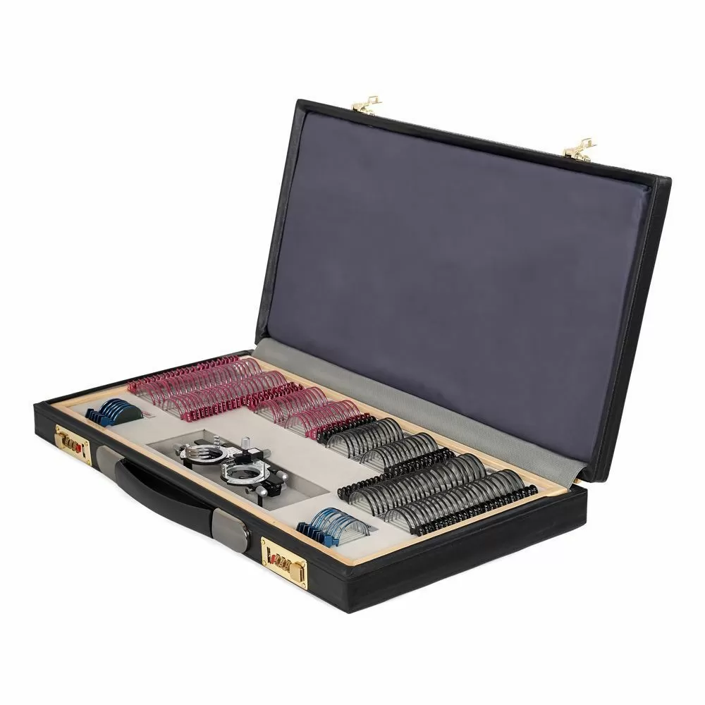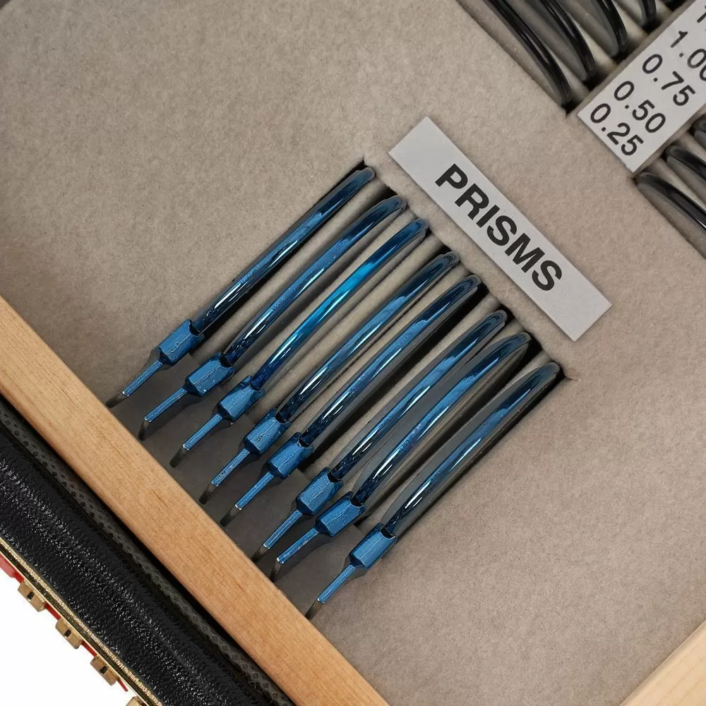 - Набор оснащен широким перечнем вспомогательных линз, предназначенных для различных дополнительных исследований зрения: окклюдер, точечная диафрагма, щелевая диафрагма, красный светофильтр, зеленый светофильтр, плоскопараллельная пластина.
