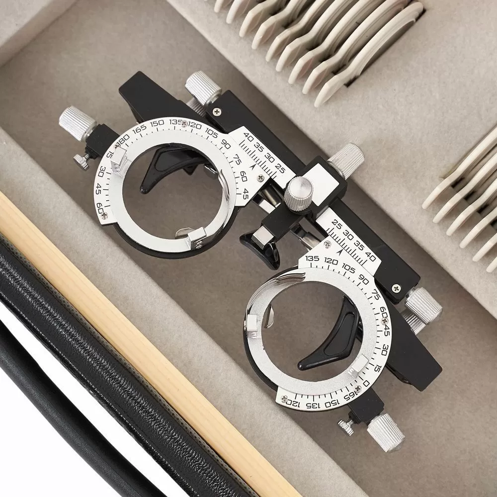 - Специальная пробная оправа позволяет исследовать зрение у пациентов с различными размерами и формой головы благодаря широким возможностям регулировки. Оправа рассчитана на установку до 4-х пар линз.