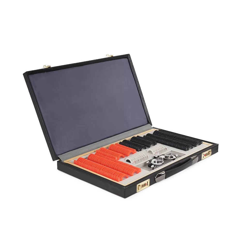 - Вспомогательные линзы предназначены для различных вспомогательных исследований зрения (точечная диафрагма, красный и зеленый светофильтр, матовая пластина, полуматовая пластина, скрещенные цилиндры, плоскопараллельная пластина, перекрестье, окклюдер, щелевая диафрагма).
