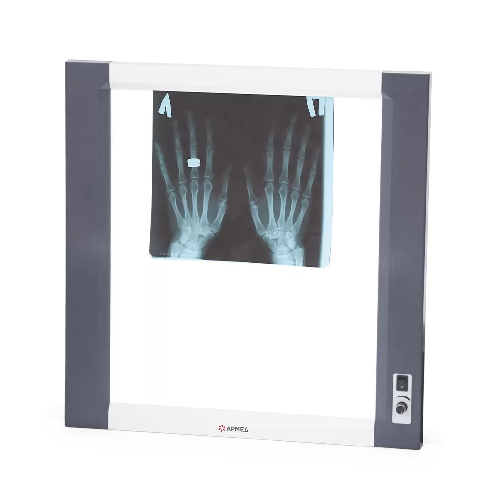 - Простое управление. Для начала работы достаточно подключить негатоскоп к сети и нажать на кнопку включения на корпусе. Экран засветится и будет готов к работе.