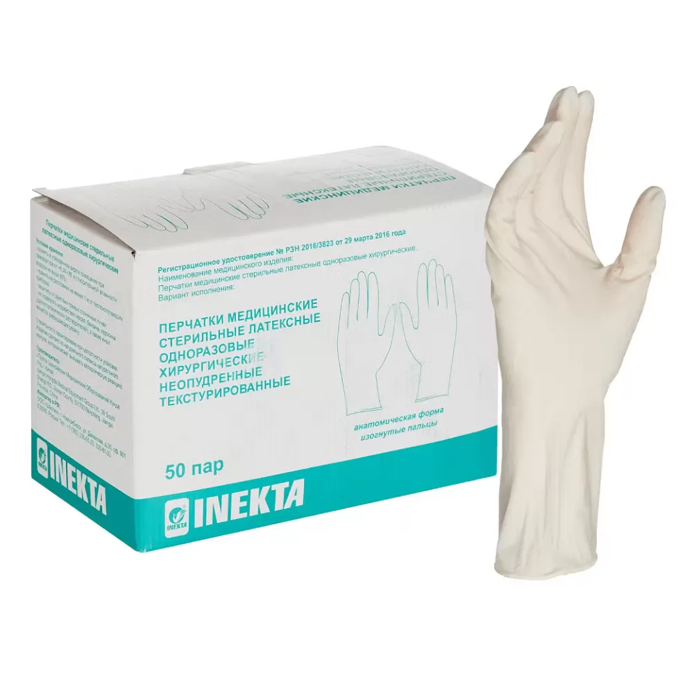 - Перчатки хирургические латексные стерильные для общехирургических операций.