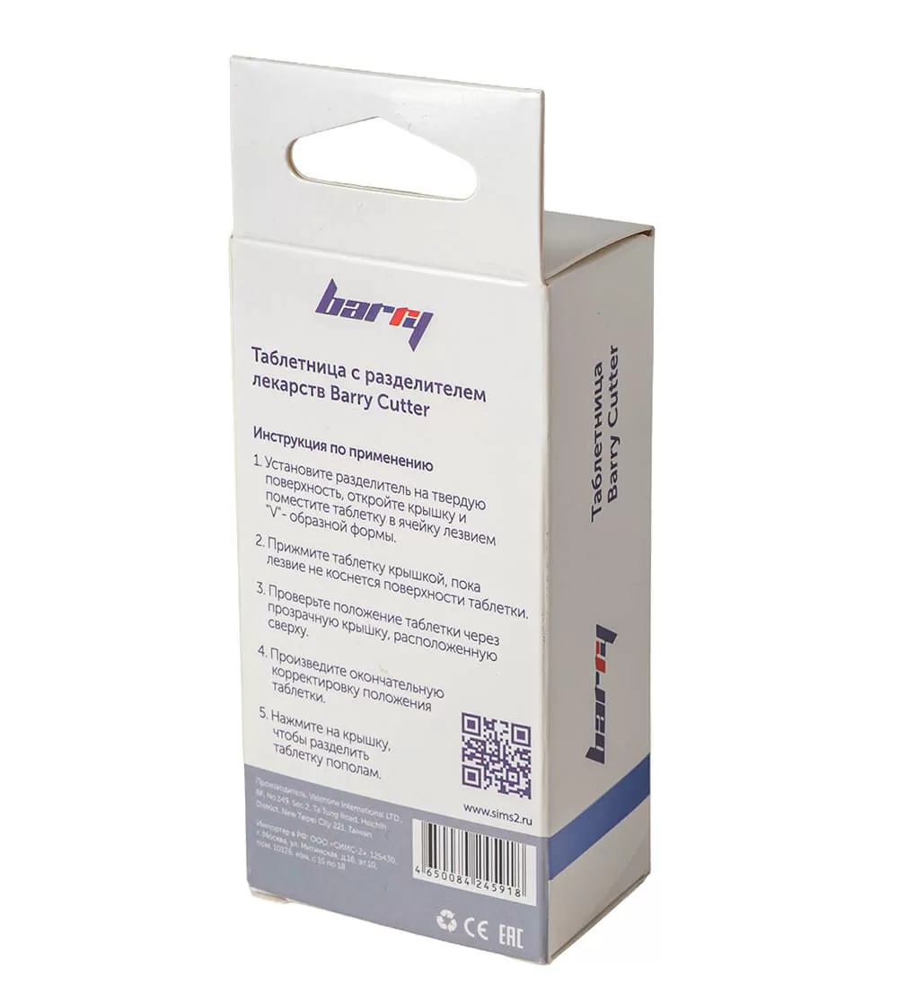 Разделитель (измельчитель) таблеток Барри Каттер (Barry Cutter) предназначен для быстрого и легкого разделения таблеток для точной дозировки. Также в Барри Каттер (Barry Cutter) можно хранить таблетки и брать их с собой.