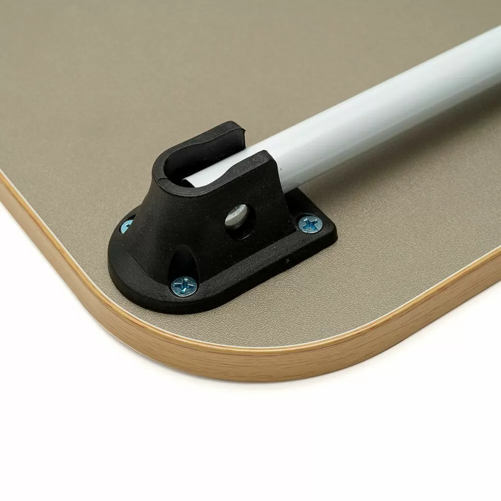 Столешница выполнена из дерева и имеет гибкий пластиковый обод для предотвращения падения предметов. Складной механизм ножек столика оборудован мягкими амортизирующими накладками, делающими использование Barry Porta на кровати особенно комфортным.