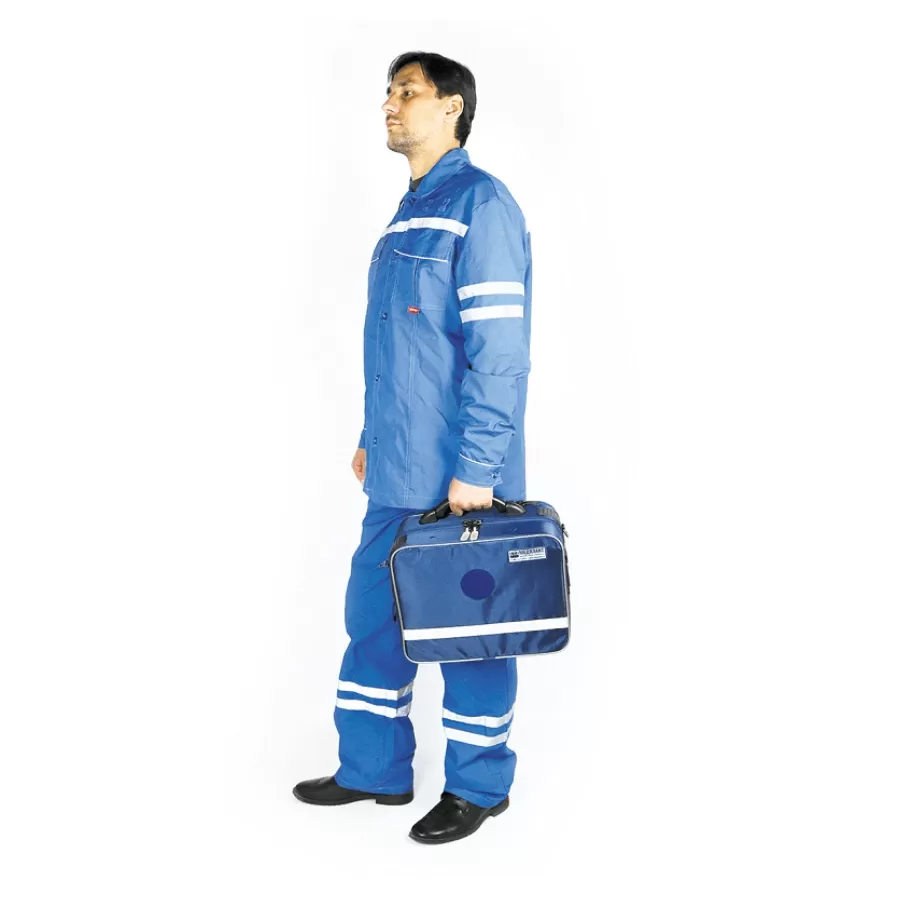 Все универсальные сумки имеют на своем корпусе светоотражающие элементы для безопасной работы в темное время суток, место крепления шевронов, держатель информационной таблички для обозначения набора/указания номера бригады/другой информации.