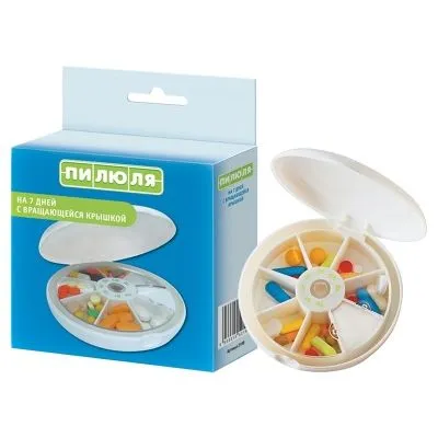 Таблетница на семь дней состоит из 7-ми отделений, которые соответствуют дням недели. Предназначены для компактного и упорядоченного хранения лекарственных средств или витаминов.