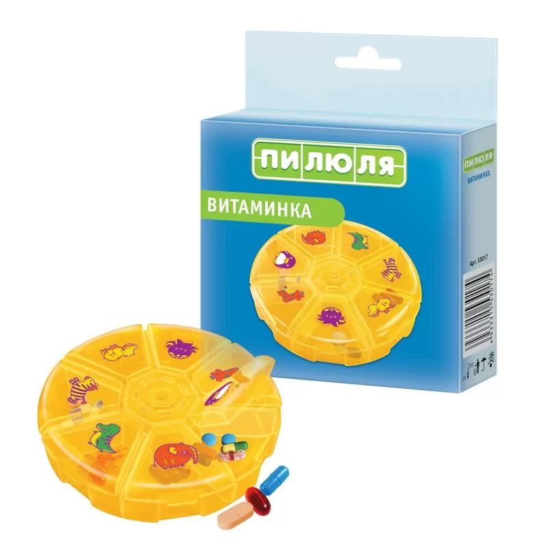 Таблетница на семь дней состоит из 7-ми отделений. Яркий дизайн разработан специально для детей и будущих мам. Предназначены для компактного и упорядоченного хранения лекарственных средств или витаминов.