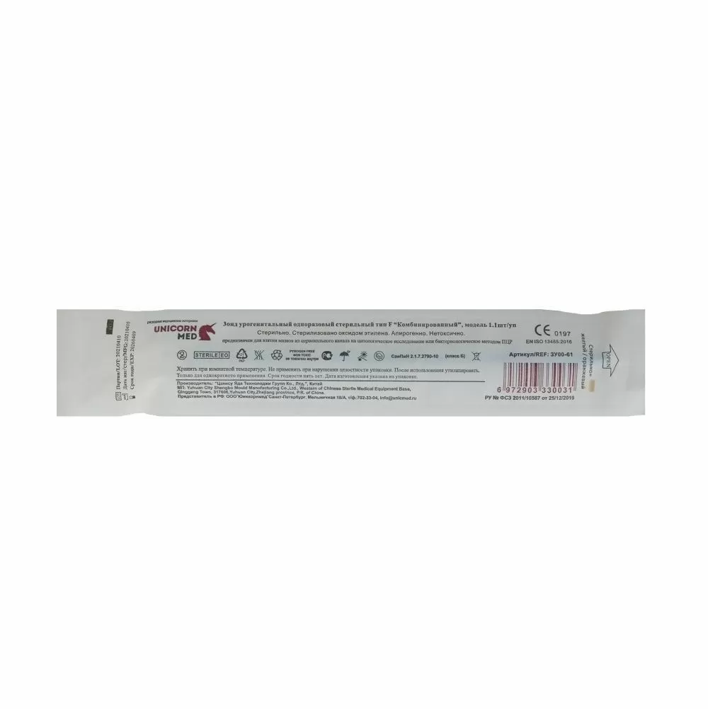 - Упаковка зонда снабжена устройством, обеспечивающим быстрое вскрытие без использования ножниц.